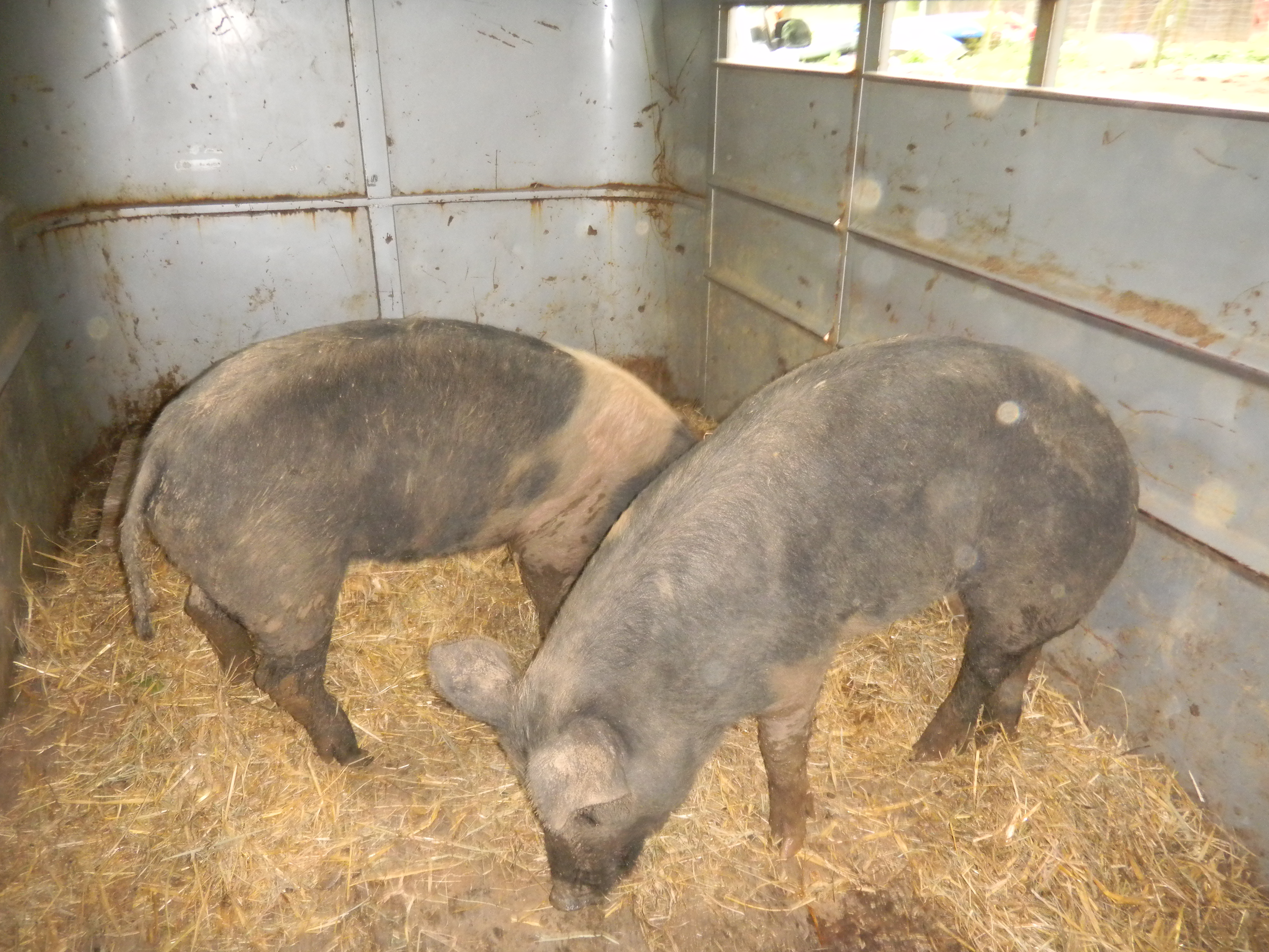 It just so happened that Sunday was the appointed day for a friend to come by and take away Xena and Zane’s two pigs for slaughter on Monday. That was quite an operation to witness (and assist somewhat) – coercing the large animals to transition from their pen to the back of a trailer. We left soon thereafter, but we very much look forward to returning – and perhaps eating some pork raised right there at Coal Stove Sink farm!