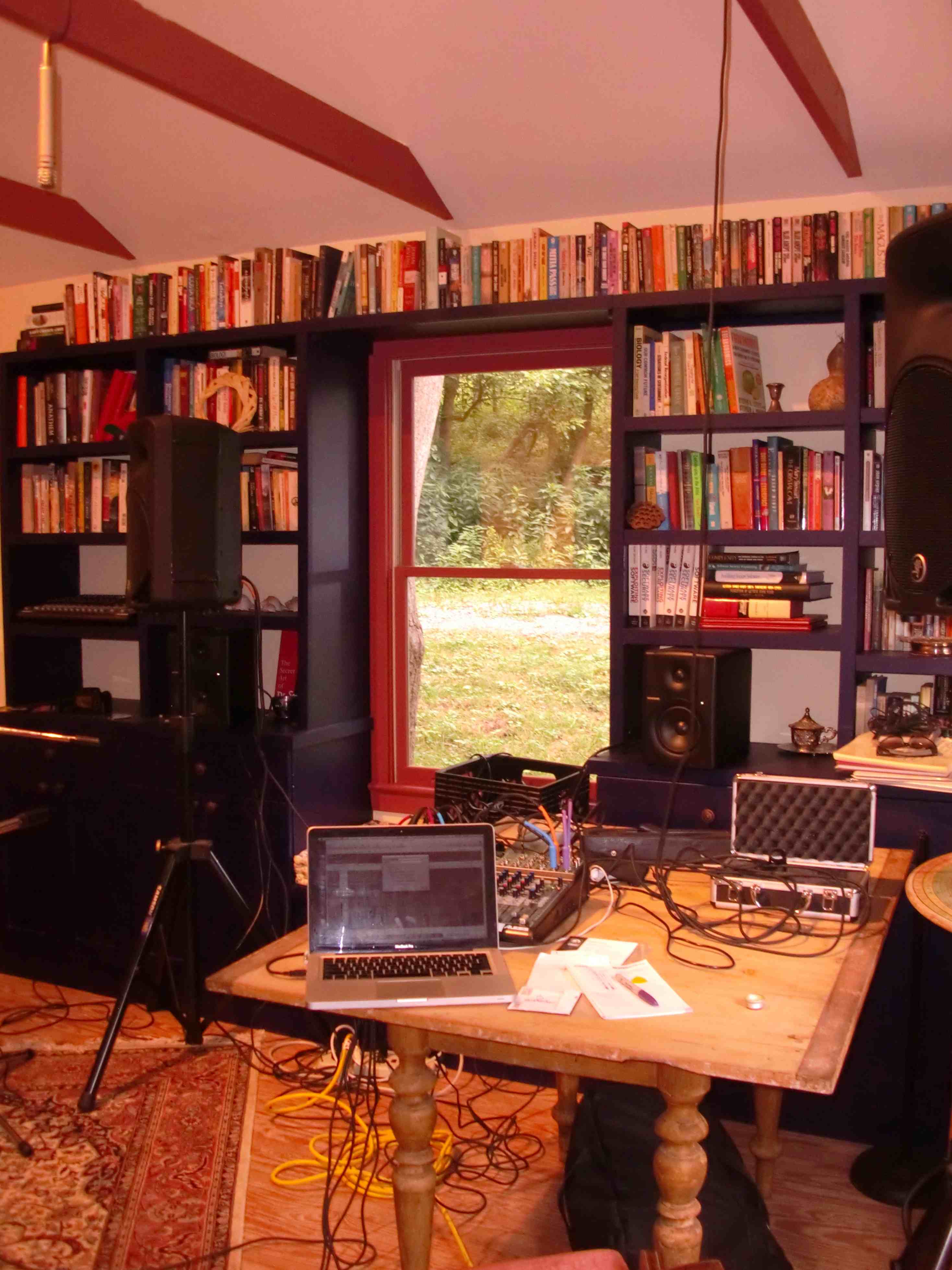 My most recent visit to Coal Stove Sink was a four day search for Aubrey. Never found him, but, I did encounter various speakers, a laptop and mixer, and many audio and power cables. See for yourself in this photo: