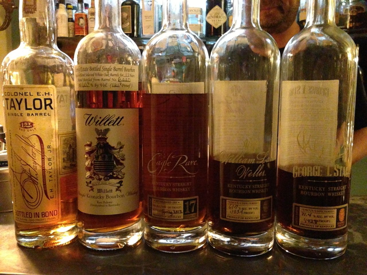 Rather than pontificating over the trip, I’d rather share a few photos that best sum up the pleasures of my visit starting with one of the obligatory evenings spent at the local bar. The evening documented in this photo involved a tour through a range of delicious bourbons, several from the antique collection: