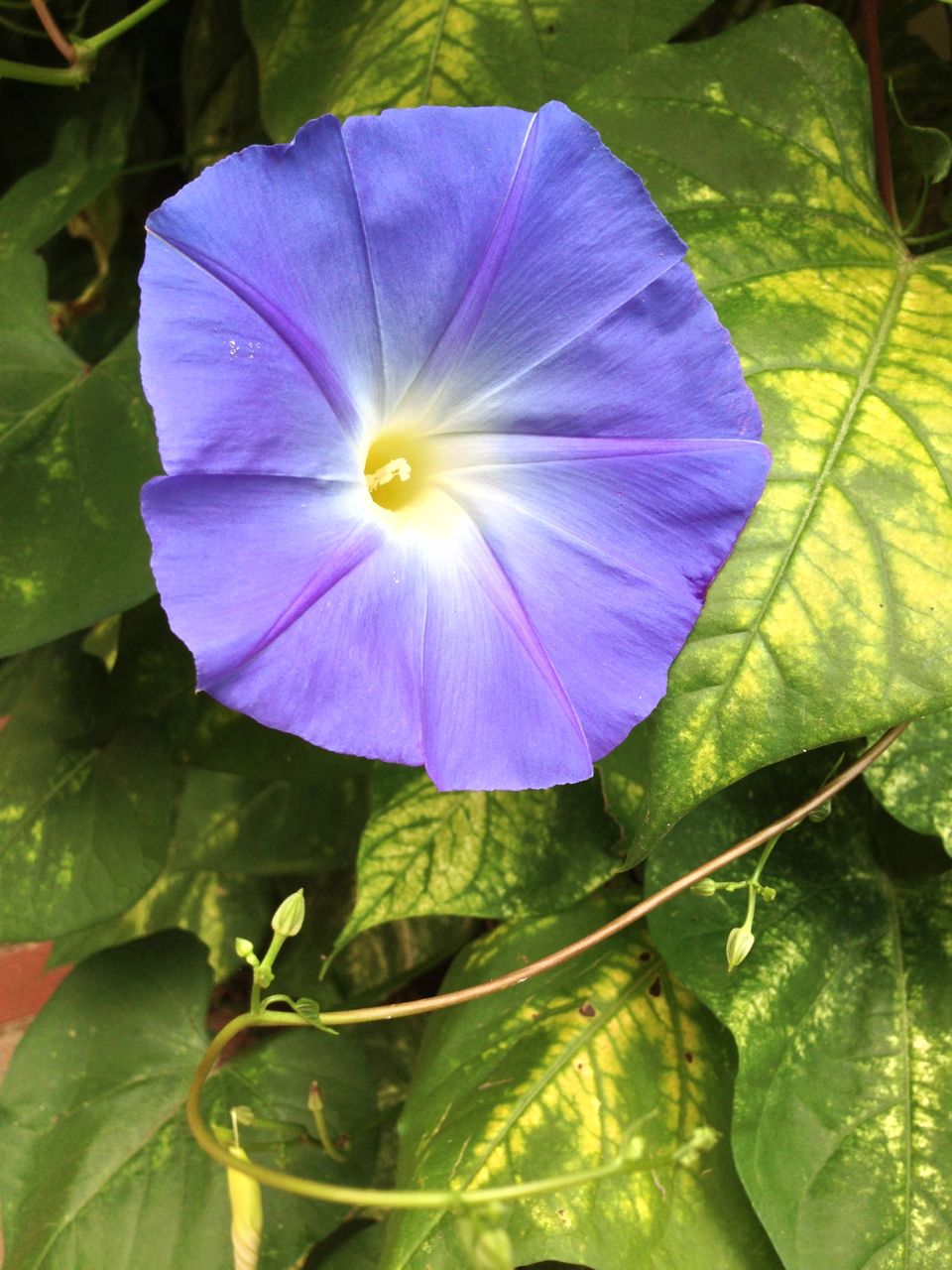 The bounty of the grounds surrounding the Guesthouse isn’t limited to the produce from the garden that concludes this post. My hosts germinated the morning glory in the photo below from a single seed and now enjoy a mass of deep green-leaved vines and vivid purple flowers covering a full side of the porch stairway: