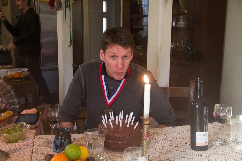 E and I visited for Thanksgiving, and enjoyed lots of turkey, family camaraderie, great b-day cake thanks to Helen, and had fun tromping around in the woods, playing with J’s new google glasses, trying out our new Team Tartan hats (Thanks Xan!) and generally being silly. We also spent some time helping to pile wood onto the growing solstice party bonfire (see the timelapse of bonfire building in the other post). We won first place in short term memory and pie eating.