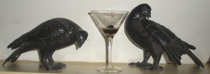 Saturday night back at the Coal Stove Sink’s extensive complex of fortified buildings involved the usual libations imbibed without inhibition. Zane is still working on his second PhD in mixology — I believe he is ABD at this point, but then again, who’s really counting? I’ve yet to fully embrace the bitters that Zane and C are so fond of, but I definitely did appreciate the absinthe wash that Zane employed on our glasses for some of the drinks — very mixologistic.